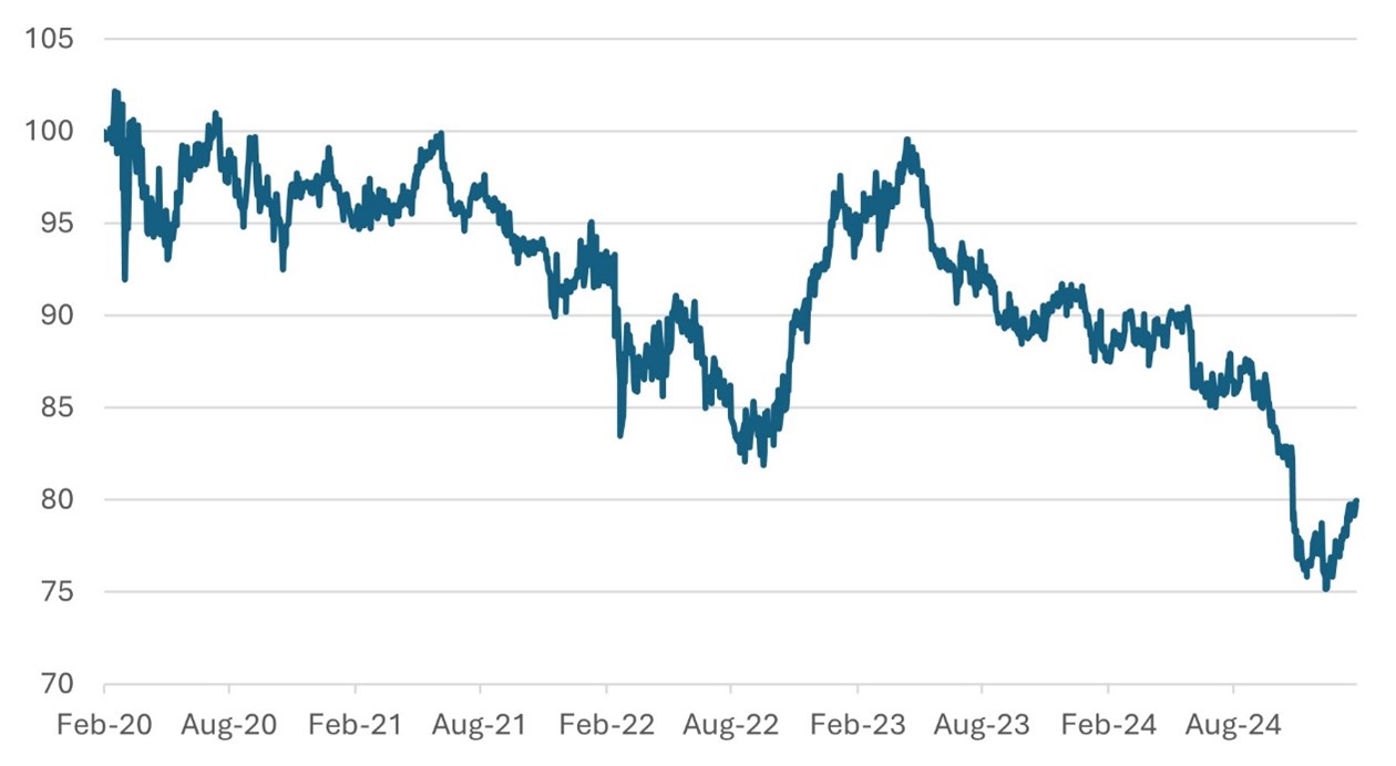 In India, the key question is whether the economy and its equity market can regain momentum following recent underperformance. Like other regions, India’s central bank has stepped in to provide support. With the US dollar’s strength fading somewhat of late and inflation expected to behave, the Reserve Bank of India took the opportunity to cut interest rates by 25 basis points. It was the first cut in rates since June 2020. Market participants anticipate further rate cuts in upcoming meetings, which could help revive economic activity that has slowed down notably over the past six months.