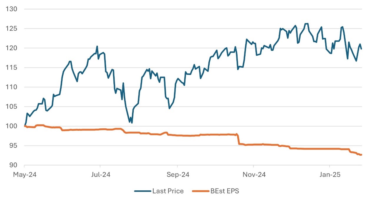 Domestic politics and the high valuation of the market are likely weighing on US equities. The US tech sector appears stagnant. The DeepSeek saga has only fuelled investor uncertainty, making them hesitant to chase tech stocks further. The recent quarterly earnings season has presented a mixed picture, with quite a few companies underperforming expectations. Notably, investor concerns stem more from disappointing forward guidance than from the latest quarterly numbers themselves.