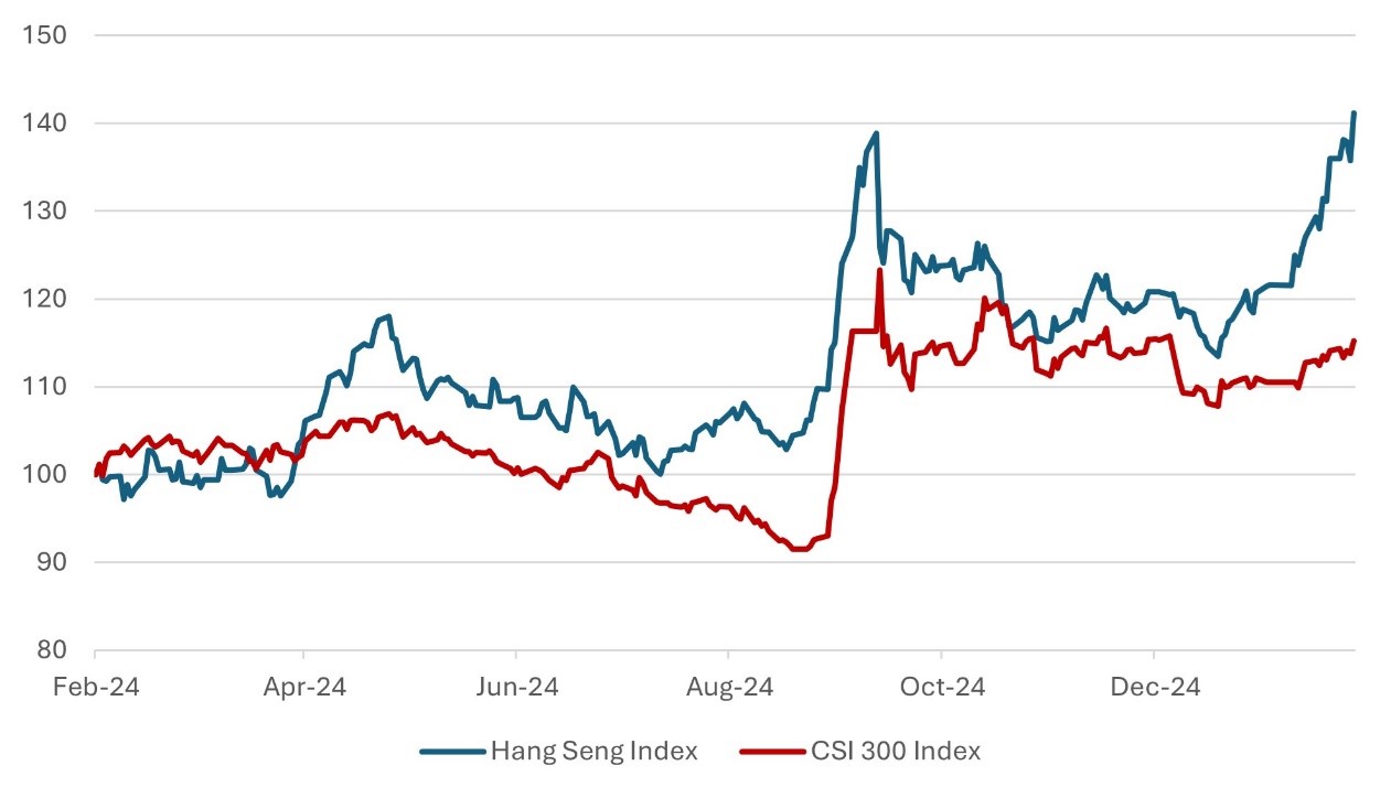 Chart 4: Hong Kong Equity Index (HSI) Well Ahead of Mainland Index (CSI 300)